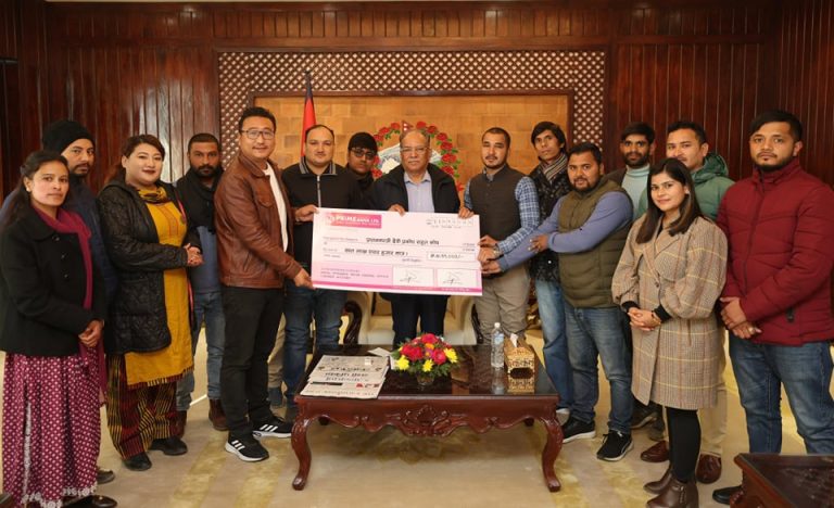 नेविसंघद्वारा प्रधानमन्त्री दैबी प्रकोप कोषमा ७ लाख ११ हजारको चेक हस्तान्तरण