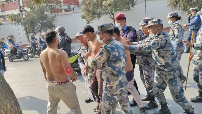 प्रधानमन्त्री तथा मन्त्रिपरिषद्को कार्यालय अगाडि अर्धनग्न रुपमा प्रदर्शनमा उत्रिएका मोहन वैद्य नेतृत्वको क्रान्तिकारी कम्युनिष्ट पार्टीका कार्यकर्ताहरु पक्राउ परेका हुन् ।