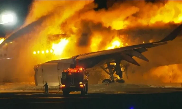 मङ्गलबार टेलिभिजन फुटेजमा जापान एयरलाइन्सको विमान धावनमार्गमा गुडिरहेको बेला त्यसको छेउबाट ठूलो मात्रामा आगो लागेको देखिएको थियो । त्यसपछि विमानको पखेटा वरपरको क्षेत्रमा आगो लागेको थियो ।