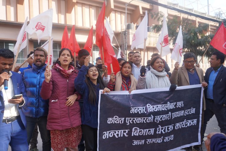 भन्सार नियमावलीमा रहेको ४५℅ कथित पुरस्कारको लुटकारी प्रावधान हटाउन माग गर्दै भन्सार बिभाग घेराउ गरिरहेको आम सम्पर्क मञ्चका नेता कार्यकर्तालाई प्रहरीले गिरफ़्तार गरेको आजपाले जनाएको छ ।