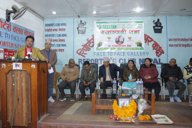 काठमाडौं, २२ पुस । फास्टफुड एशोशिएसन नेपालले संस्थाका पूर्वमहासचिव स्वर्गीय राजनारायण श्रेष्ठको १३औं पुण्य तिथिको अवसरमा श्रद्धाञ्जली सभा गरेको छ । फास्टफुड एशोशिएसनले आज (आइतबार) रिपोर्टर्स क्लब नेपालमा श्रद्धाञ्जली सभा गरी स्वर्गीय राजनाराण श्रेष्ठको आत्माको चीर शान्तिको कामनासहित परिवारजनमा समवेदना व्यक्त गरेको हो ।