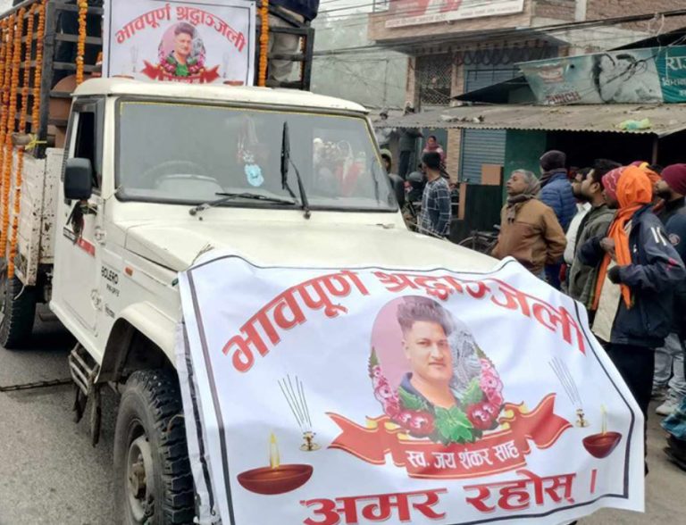 काठमाडौं, पुस २३ । सर्लाहीमा प्रहरीको गोली लागि मृत्यु भएका जयशंकर साहको आज अन्तिम संस्कार गरिदैछ । बरहथवा अस्पतालको विषयमा जारी आन्दोलनको क्रममा साहको गत शुक्रवार प्रहरीको गोली लागि मृत्यु भएको थियो।