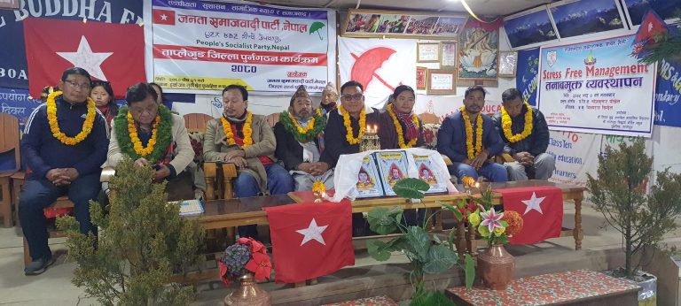 काठमाडौं, २३ पुस । जनता समाजवादी पार्टी (जसपा) नेपालको ताप्लेजुङ जिल्ला समिति पुनर्गठन भएको छ । ताप्लेजुङको फुङ्लिङमा आयोजित भेलाबाट कृतिमान मादेनको अध्यक्षतामा ३१ सदस्यीय समिति पुनर्गठन गरिएको हो ।