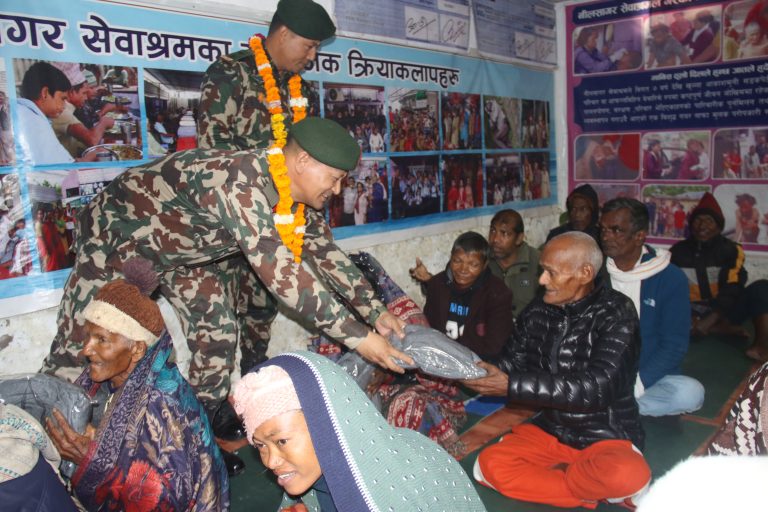 जानकी (बाँके), २५ पुस । नेपाली सेनाद्वारा बाँकेका ज्येष्ठ नागरिक तथा बालबालिकालाई न्यानो कपडा वितरण गरिएको छ ।