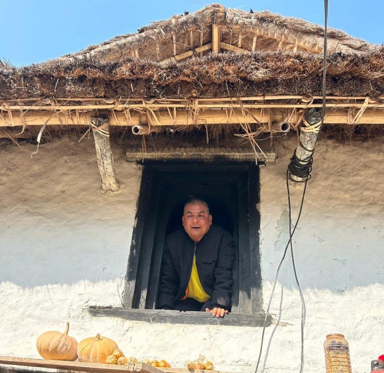 ‘इवा गाउँ हजुरबुवा केपी ओलीको जन्मघरमा आज,’ भ्यालमा बसेको तस्वीर फेसबूकमा राख्दै उनले लेखेका छन् ।