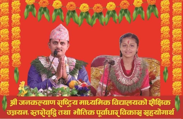 काठमाडौं, २७ पुस । नवलपुरको हुप्सेकोट गाउँपालिकास्थित जनकल्याण राष्ट्रिय माध्यमिक विद्यालयको शैक्षिक उन्नयन, स्तरोवृद्धि तथा भौतिक पूर्वाधार विकास सहयोगार्थ श्रीमद्भागवत महापुराण सप्ताह ज्ञान महायज्ञ धनधान्याञ्चल तथा धार्मिक महोत्सव आयोजना गरिएको छ ।