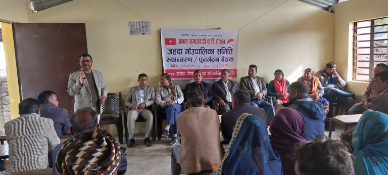 काठमाडौं, २८ पुस । जनता समाजवादी पार्टी (जसपा) नेपालको मोरङ जिल्लाअन्तर्गत जहदा गाउँपालिका पुनर्गठन भएको छ । पालिकाको वभनटोलीमा आयोजित भेलाबाट जगदीश मण्डलको अध्यक्षतामा ३९ सदस्यीय समिति पुनर्गठन भएको छ ।