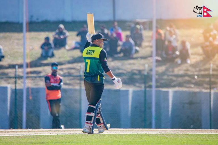 भण्डारी र मल्लको उत्कृष्ट साझेदारीसँग आर्मी विशाल योगफतर्फ निर्माणतर्फ अघि बढिरहेको छ । ताजा अवस्थामा आर्मीले ४२ ओभरमा ५ विकेट गुमाएर २३९ रन जोडिसकेको छ । यो संस्करणमा विनोदको शतक तेस्रो हो । यसअघि एपीएफका सन्दीप जोरा र पुलिसका रसिद खानले शतक प्रहार गरेका थिए ।