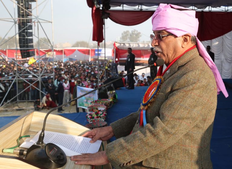 माघ १, काठमाडौँ। प्रधानमन्त्री पुष्पकमल दाहाल ‘प्रचण्ड’ले नेपालको संविधानले पहिचान र अधिकारका क्षेत्रमा धेरै अधिकारहरू संस्थागत गरेकाले प्राप्त अधिकारको रक्षा गर्दै थप अधिकारका निम्ति रचनात्मक भूमिका खेल्नुपर्ने बताएका छन् । आज (सोमबार) काठमाडौंको टुंडिखेलमा आयोजित थारू समुदायको माघी पर्वलाई सम्बोधन गर्दै प्रधानमन्त्री प्रचण्डले यस्तो बताएका हुन् ।