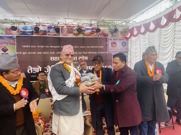 डाली थियो स्थानीय बाँसको चोयाले बुनेको र त्यसमा राखिएको कोसेली थियो, भाँगो, भटमास, बाँकोको गुन्द्रुक, सिस्नोको धुलो र आलुको चिप्स । जब उनलाई उपलब्ध गराइएको सो चिनोको जानकारी उद्घोषकले गराए, त्यसपछि मेलाका सहभागी र स्थानीयले बरर ताली बजाए । उनीहरु भन्दै थिए “मुख्यमन्त्रीज्यू, यो मायाको चिनो हाम्रा स्थानीय उत्पादन हुन् । यहाँले हाम्रा यी उत्पादनलाई गण्डकी प्रदेशमा मात्र होइन देशव्यापी रुपमा चिनाउनुपर्छ र यिनको उत्पादनलाई प्रवद्र्धन गर्नुपर्छ ।