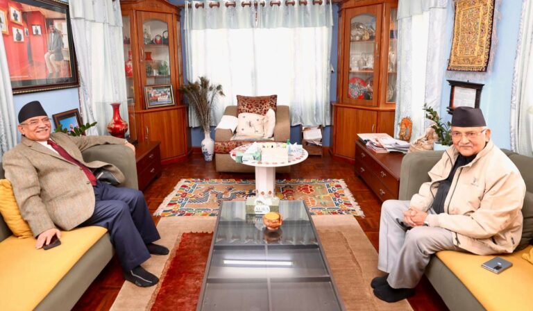 तर, माधव नेपालसहितका केही नेताहरुको असहमतिका कारण र पछि देउवाको पनि अडानका कारण गठबन्धनभित्रै सिट बाँडफाँडको सहमति भएको छ । यो बीचमा एमालेसँग एकता गरेर जाने निश्कर्षमा प्रधानमन्त्री प्रचण्ड पुगेको चर्चा चल्न थालेको छ। विगतमा दोस्रो तहका नेताहरु साथै राखेर एकता गरी नेकपा बनाएका प्रचण्ड र ओलीले यसपटक भने एक्लाएक्लै छलफल गरेको चर्चा छ । स्रोतकाअनुसार प्रचण्डले ओलीसँग विगतमा भएका गल्ती कमजोरीबाट पाठ सिक्दै वामपन्थीहरुबीच एकता नगरी नहुने निश्कर्षमा आफू पुगेको भन्दै एकताको लागि प्रस्ताव गरेका छन् ।