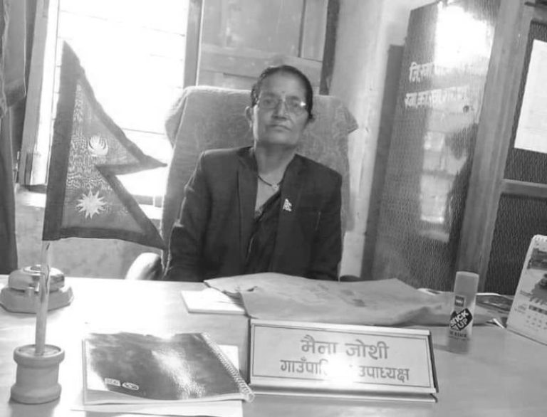 काठमाडौं,४ माघ । बाजुराको स्वामीकार्तिक खापर गाउँपालिकाकी उपाध्यक्ष मैना जोशीको निधन भएको छ।