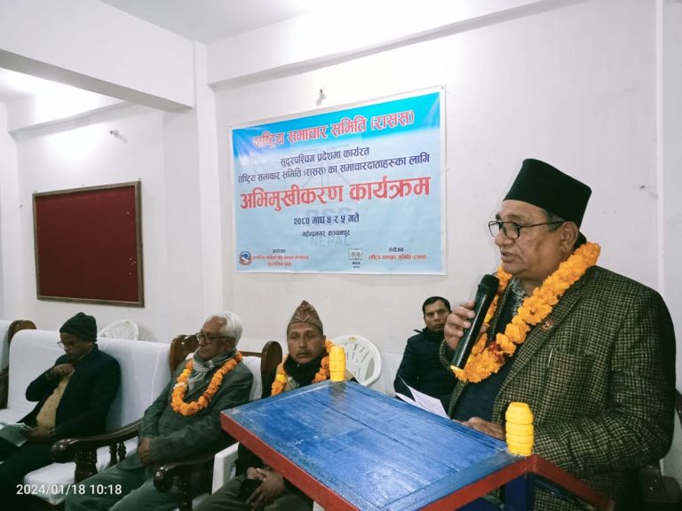 सो कार्यक्रममा राससका कार्यकारी अध्यक्ष धर्मेन्द्र झाले राससलाई नयाँ ढङ्गबाट उचाइमा पु¥याउन समाचारदाताहरुलाई तालिम सुरु गरेको बताए । लुम्बिनी र गण्डकी प्रदेशका समाचारदाताहरुपछि सुदूरपश्चिम प्रदेशमा अभिमुखीकरण गर्न लागेको बताए ।