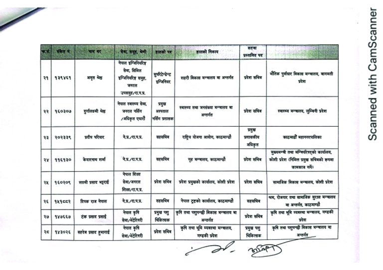 काठमाडौं,५ माघ । सरकारले २९ जना सहसचिवको सरुवा गरेको छ।