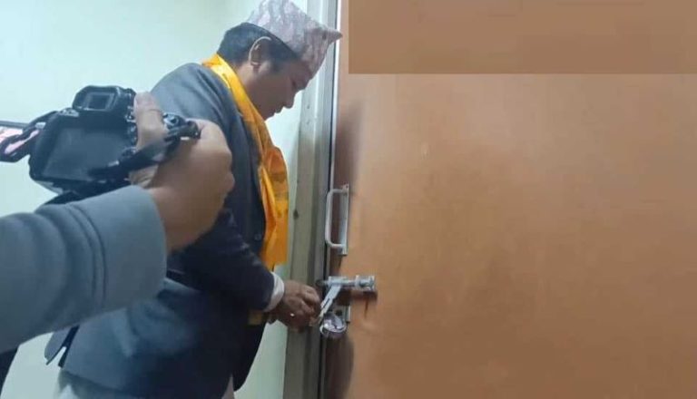 काठमाण्डौं, माघ ६ । धरानको बीपी कोइराला स्वास्थ्य विज्ञान प्रतिष्ठानका उपकुलपतिको कार्यकक्षमा माघ १ गतेदेखि लागेको ताला खुलेको छ । उपकुुलपति प्रल्हाद कार्कीले राजनीति गरेको भन्दै धरान उपमहानगरपालिकाका मेयर हर्क साम्पाङले ताला लगाएका थिए । उच्च अदालत विराटनगरको आदेशपछि साम्पाङले आफ्नो सचिवालयका कर्मचारीलाई खटाएर ताला खोलेका हुन् ।