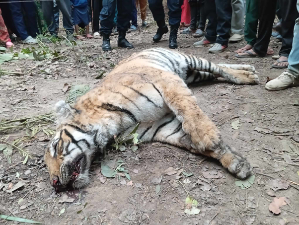 तारले बेरिएको अवस्थामा वयस्क पोथी पाटे बाघ मृत अवस्थामा भेटिएको सव डिभिजन वन कार्यालय लम्कीका फरेष्टर रामबहादुर रावलले जानकारी दिए। उनका अनुसार बाघको शरीरबाट दुर्घन्ध फैलिसकेकाले केही दिन अगाडि नै मरिसकेको हुनसक्ने देखिएको छ ।