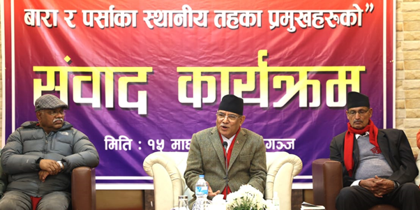 वीरगञ्ज, १५ माघ । प्रधानमन्त्री पुष्पकमल दाहाल ‘प्रचण्ड’ले सङ्घीय लोकतान्त्रिक गणतन्त्रको मर्म र व्यवस्थाबारे बुझाउन स्थानीय तहका जनप्रतिनिधि जनताको घरदैलोमा पुग्नुपर्ने बताएका छन् । जनतालाई गणतन्त्रको मर्म बुझाउनु नसकिएको भन्दै उनले स्थानीय तहका जनप्रतिनिधिले त्यसतर्फ विशेष ध्यान दिनुपर्ने बताएका हुन् ।