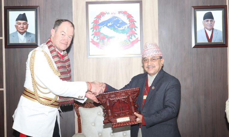 काठमाडौँ, १६ माघ । उपप्रधानमन्त्री एवम् रक्षामन्त्री पूर्णबहादुर खड्कासँग बेलायती सेनाका सेनाध्यक्ष जनरल सर प्याट्रिक स्यान्डर्सले शिष्टाचार भेट गरेका छन् ।