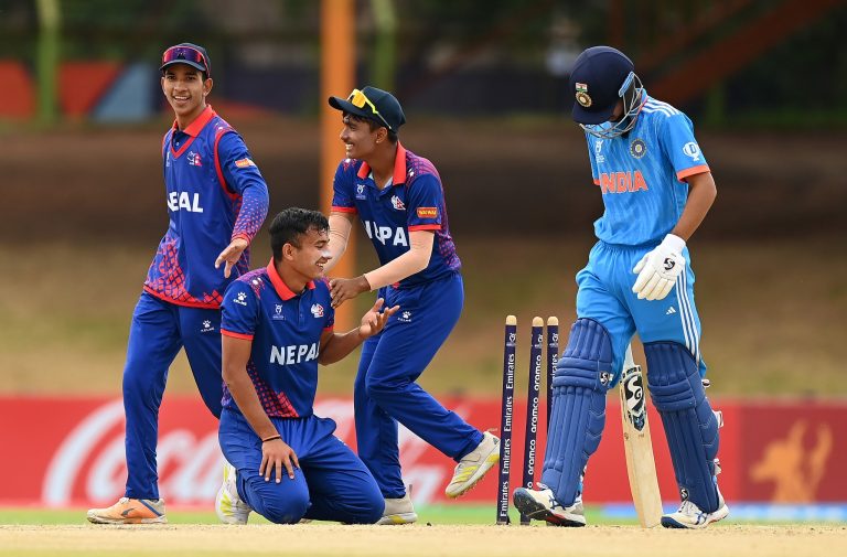 काठमाडौं,१९ माघ । आईसीसी यू-१९ विश्वकप क्रिकेटअन्तर्गत सुपर सिक्सको अन्तिम खेलमा भारतविरुद्ध नेपालले बलिङ गरिरहेको छ । टस जितेको भारतले सुरुमा ब्याटिङ गर्ने निर्णय लिएपछि नेपालले बलिङ गरिरहेको हो ।