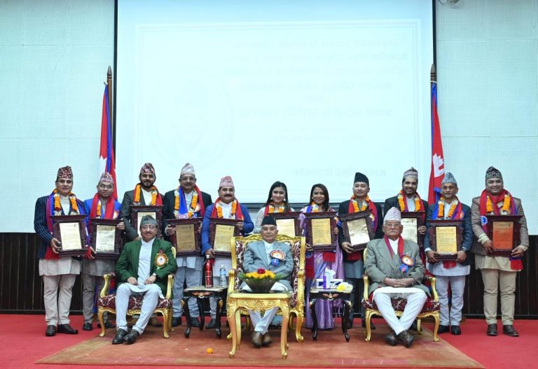 काठमाडौँ । राष्ट्रपति रामचन्द्र पौडेलले नेपाली सङ्गीतमा नेपाली लोकजीवन, मौलिकपनको विकास र विस्तार एवं संरक्षण गर्नुपर्ने बताएका छन् ।