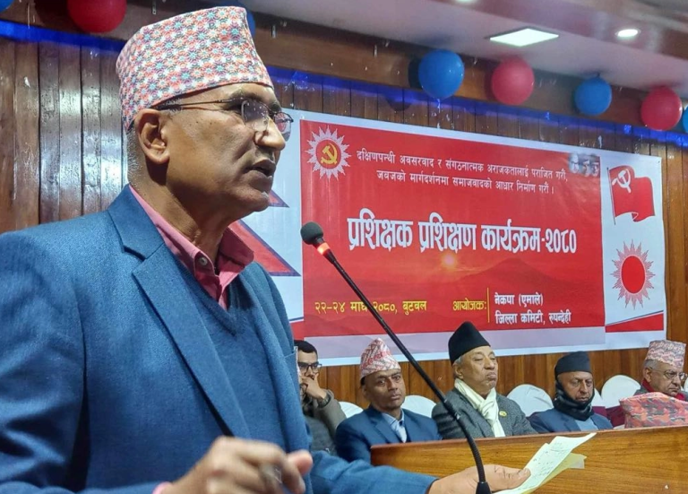 काठमाडौं, २३ माघ । नेकपा (एमाले)का उपाध्यक्ष विष्णुप्रसाद पौडेलले समाजवादका आधार निर्माण गर्ने र समाज रुपान्तरणमा सहभागी हुने चुनौतीपूर्ण काममा पार्टी कार्यकर्ता सक्रिय भएर लाग्न आग्रह गरेका छन् । पार्टीको रुपन्देहीको आयोजना र केन्द्रीय पार्टी स्कुल विभागको समन्वयनमा हिजो (सोमबार) देखि बुटवलमा सुरु भएको तीन दिने प्रशिक्षक प्रशिक्षण कार्यक्रमको उद्घाटन गर्दै उनले यस्तो बताएका हुन् ।