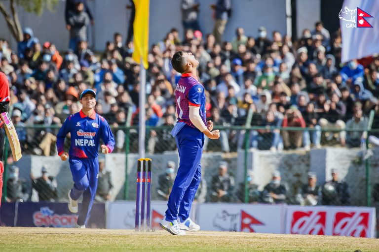 काठमाडौं,२५ माघ । एकदिवसीय अन्तर्राष्ट्रिय सिरिज अन्तर्गतको खेलमा नेपालले दिएको २२५ रनको लक्ष्य पछ्याएको क्यानडालाई पहिलो झट्का लागेको छ ।