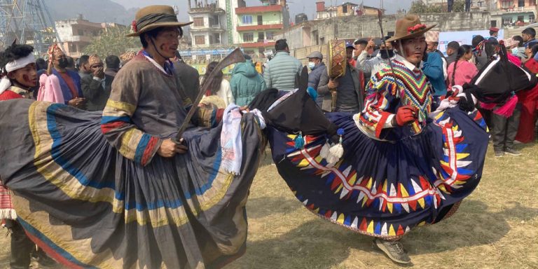 त्रिशूली (नुवाकोट), २९ माघ । नुवाकोटको विदुरमा जारी आठौँ नुवाकोट महोत्सव अवलोकन गर्न आउनेलाई किस्पाङ गाउँपालिका–४ साल्मेका तामाङ समुदायद्वारा प्रस्तुत घोडा नाचले आकर्षित बनाएको छ ।