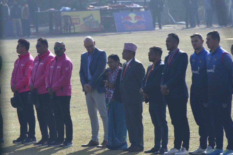 काठमाडौं, फागुन ३ । आइसिसी क्रिकेट विश्वकप लिग–२ अन्तर्गत त्रिकोणात्मक एकदिवसीय सिरिजमा नामिबियाविरुद्ध नेपालले खराब सुरुवात गरेको छ । नेपालले पहिलो विकेटको रूपमा कुशल भुर्तेललाई पहिलो बलमै गुमायो । उनलाई रुबेन ट्रम्पलम्यानले शून्यमै क्याच आउट गराए ।