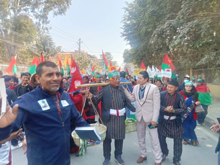 विश्व सामाजिक मञ्च उद्घाटनअघि बिहीबार राजधानीमा निकालिएको र्यालीमा धमला सहभागी भएका हुन् ।
