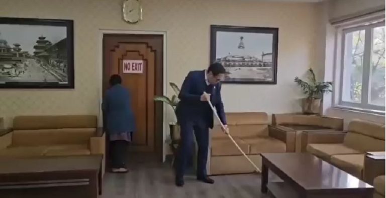 आफ्नो कार्यक्रमक्ष सरसफाइका क्रममा ‘फूलको आँखामा फूलै संसार’ गीतको धुन बजिरहेको सुन्न सकिन्छ । साथै, कार्यलय सहयोगी एक महिलासँग उनले कुराकानी गरेको सुन्न सकिन्छ । मन्त्री किरातीले ती महिला कर्मचारीलाई आफूहरु छिटो कार्यालय आउँदा समस्या परेको हो ?, पहिला कतिबजे आउनुहुन्थ्यो ? लगायतका प्रश्न गर्छन् । उनले देशको लागि काम गरेको भनेर सम्झन र दुःख नमान्न ती महिला कर्मचारीलाई आग्रह गर्छन् । साथै, मन्त्री किरातीले ती महिला कर्मचारीसँग केही घरायसी कुराहरु सोधेका छन् ।