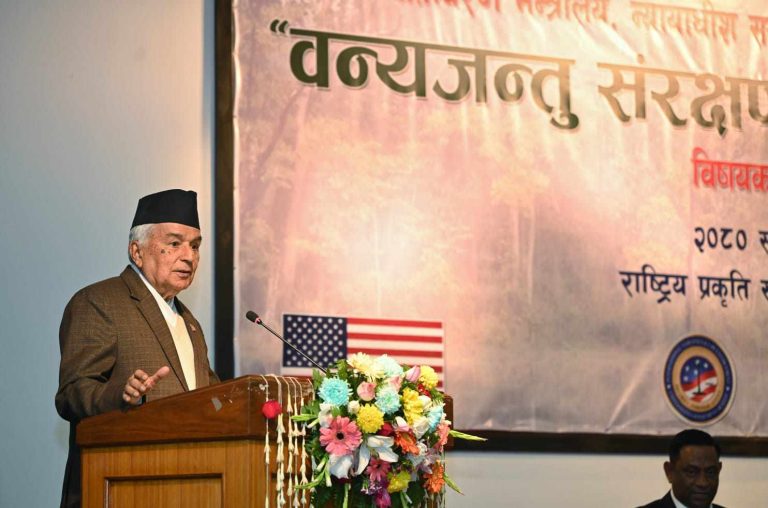 काठमाडौं, ५ फागुन । राष्ट्रपति रामचन्द्र पौडेलले प्रकृति संरक्षण आज मानवजातिको साझा चासो र चुनौतीको विषय बनेको बताएका छन् । वन तथा वातावरण मन्त्रालय, न्यायाधीश समाज र राष्ट्रिय प्रकृति संरक्षण कोषद्वारा शनिबार यहाँ आयोजित वन्यजन्तु संरक्षण र वातावरणीय न्याय विषयक सम्मेलनलाई सम्बोधन गर्दै राष्ट्रपति पौडेलले सो धारणा व्यक्त गरेका हुन् ।