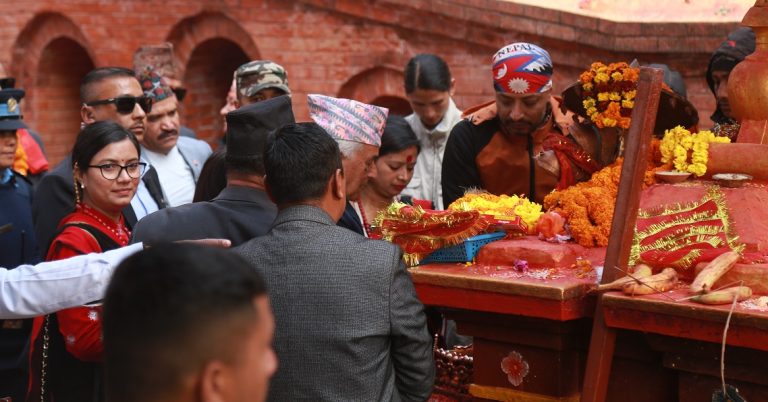 काठमाडौँ, ६ फागुन । राष्ट्रपति रामचन्द्र पौडेल काठमाडौँ शङ्खरापुर नगरपालिकास्थित शालीनदीमा पुगेर भई पूजा, अर्चना गरेका छन् । पौष शुक्ल पूर्णिमादेखि जारी श्री स्वस्थानी व्रत कथाअन्तर्गतको माधवनारायण मेलामा आज बिहान राष्ट्रपतिप शालीनदी सहभागी भएका हुन् ।