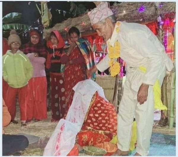 काठमाडौं, फागुन ८ । डोटीको जोरायल गाउँपालिका–५ भाम गाउँका ७१ वर्षीय ठक्कर बहादुर खडायतले ७१ वर्षको उमेरमा श्रीमतीको सिउँदो भरेका छन। तीन छोरी र एक छोरा भएका यी दम्पतीले लामो प्रेम सम्बन्ध सँगै बिताएपनि खड्काले श्रीमतीको सिउँदो भने भरेका थिएनन्।