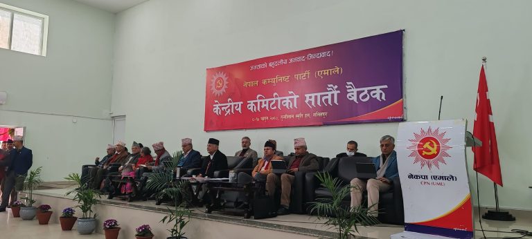 काठमाडौं, ८ फागुन । नेकपा (एमाले) को केन्द्रीय कमिटीको बैठक सुरू भएको छ । बैठक केहीबेर अघिबाट पार्टी केन्द्रीय कार्यालय च्यासलमा सुरू भएको हो । बैठकका लागि ६ वटा कार्यसूची तय गरिएको छ। बैठकमा पार्टी अध्यक्ष केपी शर्मा ओलीले मुलुकको समसामयिक राजनीतिक परिस्थितिबारे सम्बोधन गर्दैछन्।
