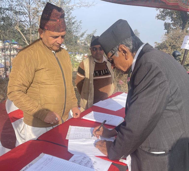 काठमाडौं, ८ फागुन । नेपाली कांग्रेसको महासमिति बैठकस्थलमा हिन्दुराष्ट्रका लागि हस्ताक्षर अभियान चलाइएको छ । कांग्रेस नेता शंकर भण्डारीसहितका २२ जना नेताहरुले उक्त अभियान सुरु गरेका हुन् ।