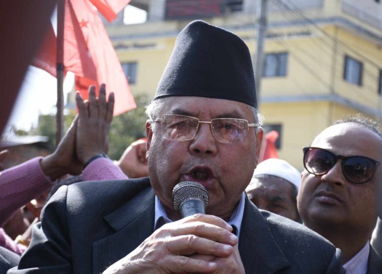 ‘यो देशमा थुप्रै कम्युनिष्ट पार्टीहरु छन् । तपाईँ कम्युनिष्ट पार्टीहरु यो देशका श्रमजीवी जनताको पार्टी हो कि दलाल पुँजीपति वर्गको पार्टी हो ? यदि तपाईँहरु श्रमिक जनताको पार्टी हो भने आउनुस् मैदानमा, किसानहरुलाई साथ दिनुस्, मिटरब्याज पीडितहरुलाई साथ दिनुस् । होईन भने कम्युनिष्ट पार्टीका नक्कली साईनबोर्ड फ्याँकिदिनुस्,’– नेता खनालले भने । Photo By: Mukunda Kalikote/RN