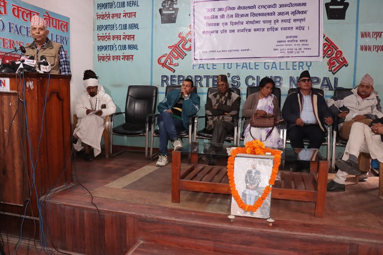 काठमाडौं, १४ फागुन । स्वतन्त्र नागरिक समाजमा संस्थापक अध्यक्ष स्वर्गीय हेमविक्रम सिलवालको वार्षिक पुन्य तिथिको अवसरम स्मृति सभा गरिएको छ । आज (सोमबार) रिपोर्टर्स क्लब नेपालमा पत्रकार सम्मेलन गरी स्वतन्त्र नागरिक समाजले स्वर्गीय सिलवालको सम्झना र उनको योगदानको सम्झना गरेको हो ।