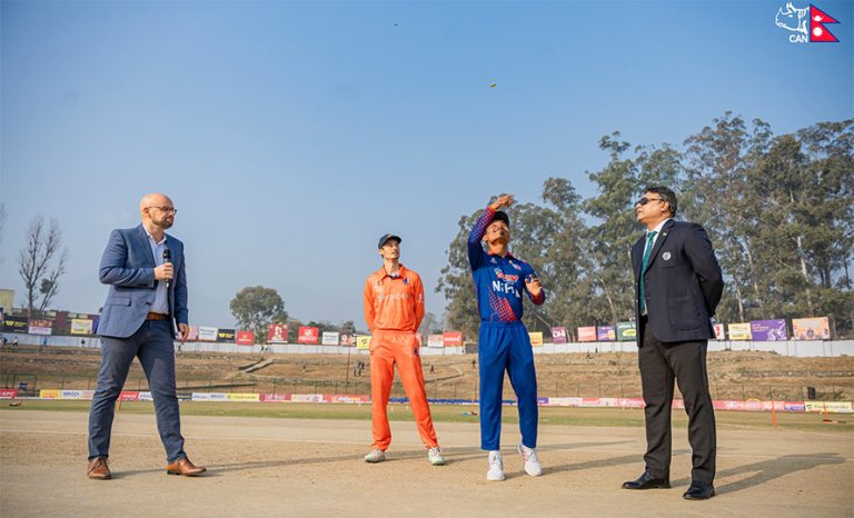 काठमाडौं । नेपालले त्रिकोणात्मक टी-२०आई सिरिज अन्तर्गत दोस्रो खेलमा नेदरल्यान्ड्ससँग टस जितेर पहिला बलिङ गर्ने भएको छ ।