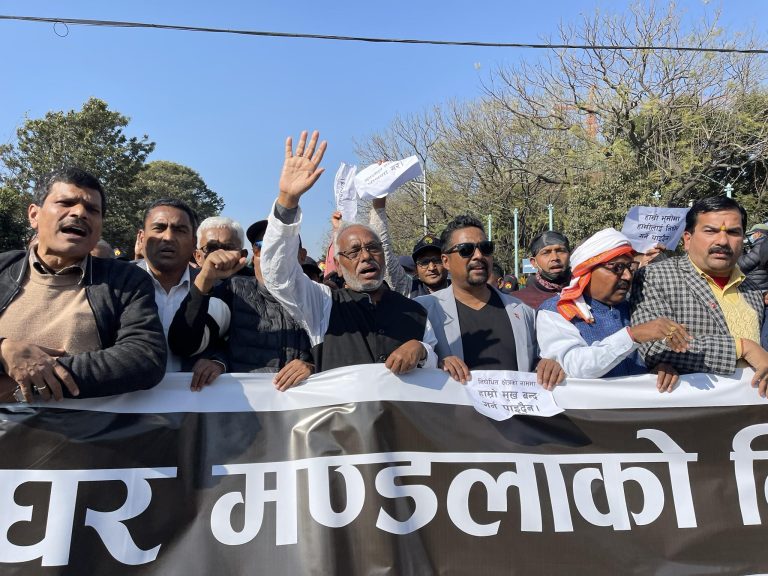 काठमाडौं, १६ फागुन । माइतीघरको निषेधाज्ञा तोड्न भन्दै अगाडि बढेको भीड र प्रहरीबीच भद्रकालीमा झडप भएको छ ।माइतीघरतर्फ अगाडि बढेको भीडलाई प्रहरीले रोक्ने प्रयास गरेको थियो । सो क्रममा प्रहरी र प्रदर्शनकारीबीच झडप भएको हो ।