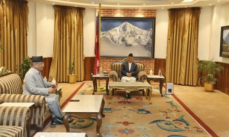काठमाडौं । प्रधानमन्त्ती पुष्पकमल दाहाल प्रचण्ड र राष्ट्रपति रामचन्द्र पौडेलबीच भेटवार्ता भएको छ । नयाँ सत्ता गठबन्धन बनेपछि प्रधानमन्त्री प्रचण्ड राष्ट्रपति पौडेल भेट्न शीतल निवास पुगेका हुन् ।