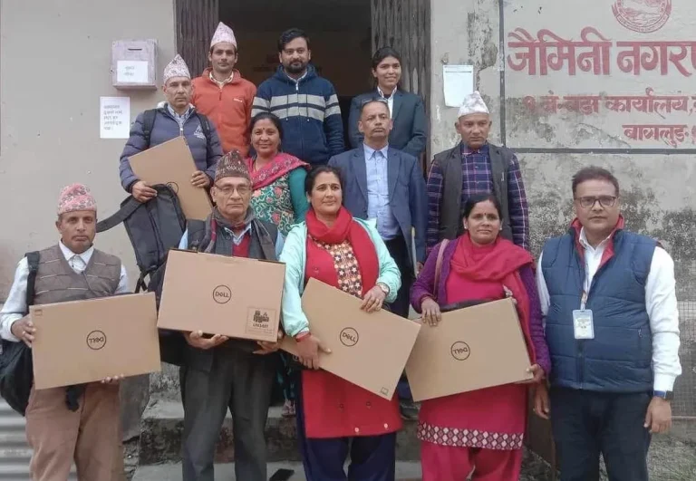 बलेवा (बागलुङ) , २१ फागुन । बागलुङको जैमिनी नगरपालिका–१ को वडा कार्यालयले वडाभित्र रहेका पाँच सामुदायिक विद्यालयलाई ल्यापटप उपलब्ध गराएको छ ।