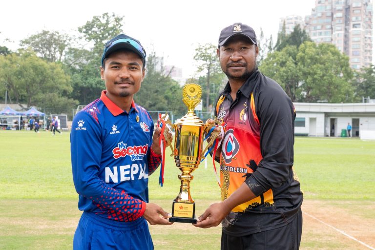 काठमाडौं । हङकङमा जारी टी-२० सिरिजको उपाधिका लागि पपुवा न्युगिनीविरुद्ध खेलिरहेको नेपालले पहिलो ओभरमै विकेट लिन सफल भएको छ ।