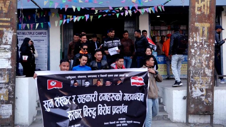 काठमाडौं, ५ चैत । नेपाल विद्यार्थी संघ (नेविसंघ) पशुपति बहुमुखी क्याम्पस इकाइले सरकारविरुद्ध विरोध प्रदर्शन गरेको छ । आज (सोमबार) नेविसंघ पशुपति क्याम्पस इकाइले सरकार विरुद्ध प्रदर्शन गरेको हो ।