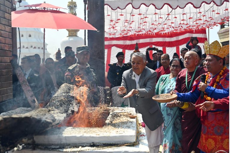 काठमाडौँ, ५ चैत । राष्ट्रपति रामचन्द्र पौडेलले स्वयम्भू महाचैत्यको मूल छत्र–गजुरको प्राण प्रतिष्ठा गरेका छन् ।