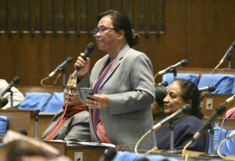 उनले भनिन् ‘कसरी चल्छ सत्ता ? गृहमन्त्रीले बाहिर बोल्नुभएको छ। प्रतिपक्षले संसद् बन्द गरेपछि सरकार चल्छ ? त्यो कदापि हुन सक्दैन। सरकारको उपप्रधान तथा गृहमन्त्रीको गैर जिम्मेवार पूर्ण भनाइ राख्नुभयो। त्यो पनि जनता र देशसँग सम्बन्धित बजेटको छलफलको बेलामा । सदन उहाँलाई चाहिएको छैन होला हामीलाई चाहिएको छ। बजेटको छलफलको विषयमा हामी तयार छौँ। अवरोध गर्दैनौँ। छानबिन समिति गठन गर्न किन डराउनुपर्यो ? हिजो यदि हाउसमा समिति गठन गरेको होइन। उहाँको विषयमा समिति गठन गर्न माग गर्दा नहुने ? के उहाँ स्वर्गबाट आएको हो ? हामी सबै यदि जन्मेका हौँ। झन् शंका उब्जेको छ’।