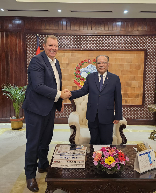 काठमाडौँ, ७ चैत । प्रधानमन्त्री पुष्पकमल दाहाल ‘प्रचण्ड’ सँग अन्तर्राष्ट्रिय क्रिकेट काउन्सिल (आइसीसी) का अध्यक्ष ग्रेज बार्क्लेले शिष्टाचार भेट गरेका छन् । प्रधानमन्त्री निवास बालुवाटारमा उनीहरूबीच आज भएको भेटमा नेपालको क्रिकेट विकासका विविध विषयमा छलफल भएको थियो ।
