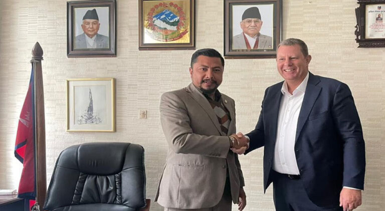 काठमाडौँ, ७ चैत । युवा तथा खेलकुदमन्त्री बिराजभक्त श्रेष्ठ र अन्तर्राष्ट्रिय क्रिकेट काउन्सिल (आईसीसी)का अध्यक्ष ग्रेग बार्कलेबीच आज युवा तथा खेलकुद मन्त्रालय, सिंहदरबारमा भेटघाट भएको छ ।