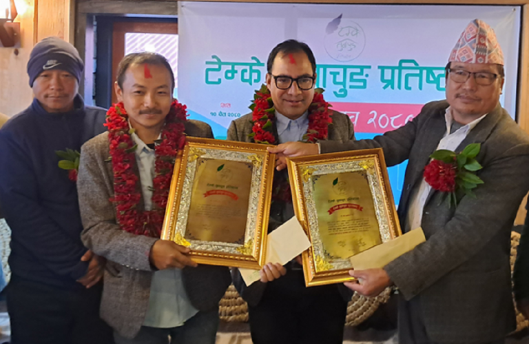 दुवैजनालाई जिल्ला समन्वय समितिका प्रमुख सनबहादुर राईले ताम्रपत्र र नगद पुरस्कार हस्तान्तरण गरे । प्रतिष्ठानले जिल्लाको भाषा, कला, साहित्य, खेलकुदलगायत क्षेत्रमा विशेष योगदान पुर्याउने प्रतिभालाई हरेक वर्ष ‘टेम्के तुवाचुङ पुरस्कार’ प्रदान गर्दै आएको अध्यक्ष एक्लेले बताए ।
