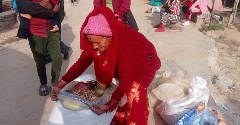 भोजपुर, ११ चैत । बहत्तर वर्षको उमेरमा गाउँघरका हटियामा पुग्नु भोजपुरकी शिवमाया कार्कीको दैनिकीजस्तो बनेको छ । घरमा आराम गरेर बस्नुपर्ने उमेरमा उनी हाटबजारमा बदाम बेच्न पुग्ग्छिन् । बदामको व्यापार गरेर महिनामा रु १५ देखि २० हजारसम्म आम्दानी गर्दै आएको उनी बताउँछिन् । पैतालीस वर्षअघिदेखि बदामको व्यापार थालेकी उनी अहिले पनि बदाम उत्पादन हुने ठाउँमा उत्तिकै उत्साहका साथ व्यापार गर्न जान्छिन् ।