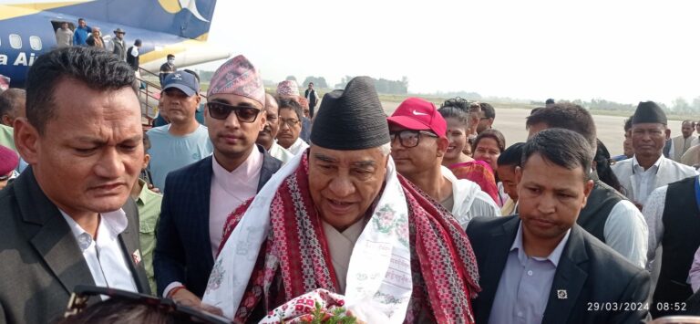 काठमाडौं, चैत १६ । नेपाली कांग्रेसका सभापति शेरबहादुर देउवाले पार्टी सङ्गठन मजबुत बनाउन गाउँ केन्द्रित हुन नेता कार्यकर्तालाई निर्देशन दिएका छन् । कांग्रेस नेता स्वर्गीय खुमबहादुर खड्काको शालिक अनावरणका लागि आज विहान नेपालगञ्ज पुगेका सभापति देउवाले स्वागतका लागि नेपालगन्ज विमानस्थलमा पुगेका अगुवा नेता कार्यकर्तालाई सङ्गठन निर्माण, विस्तार र सुदृढीकरणमा लाग्न निर्देशन दिएका हुन्।